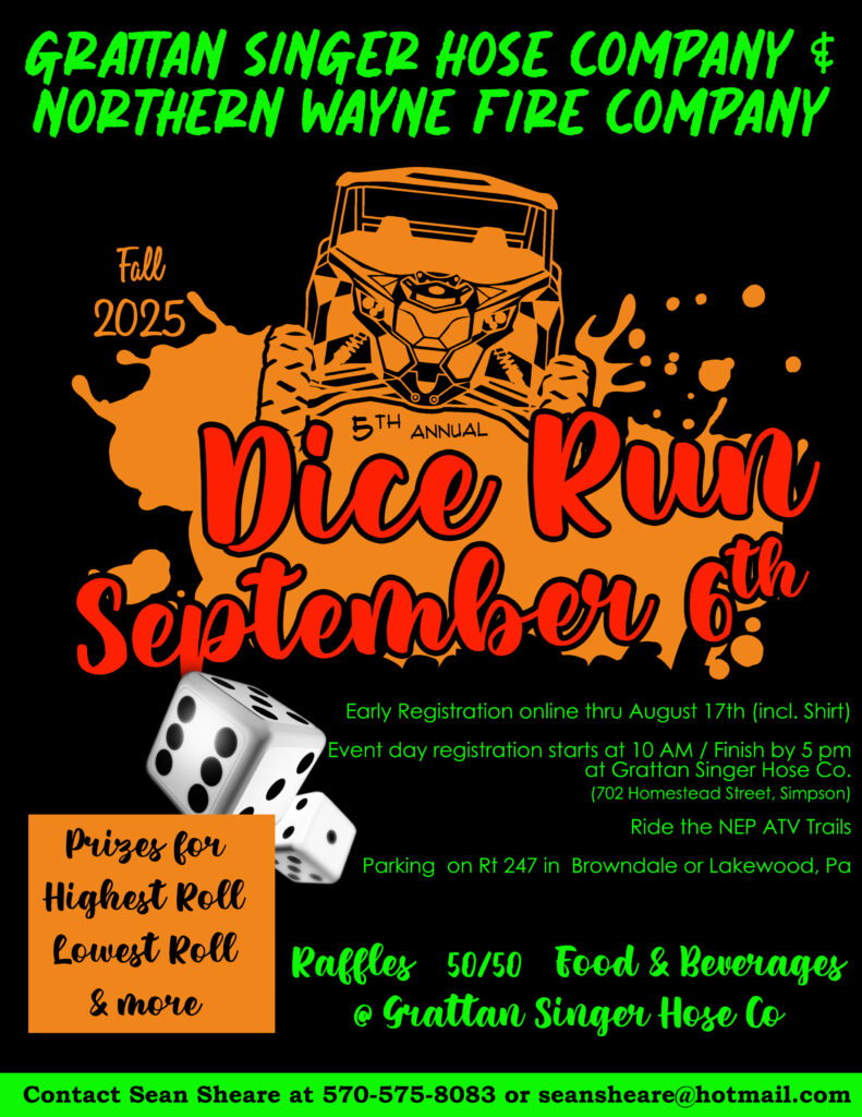 Saturday, September 6, 2025 at Grattan Singer Hose Company, Simpson, PA